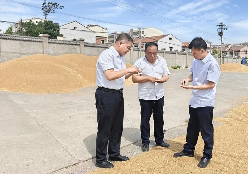 集團(tuán)領(lǐng)導(dǎo)一行先后到達(dá)農(nóng)業(yè)一、二、三分公司部分自種地和曬場(chǎng),認(rèn)真察看麥粒飽滿(mǎn)度,詳細(xì)詢(xún)問(wèn)收割進(jìn)度、產(chǎn)量、入庫(kù)、防火等工作情況,農(nóng)業(yè)公司負(fù)責(zé)人現(xiàn)場(chǎng)做了詳細(xì)匯報(bào)。